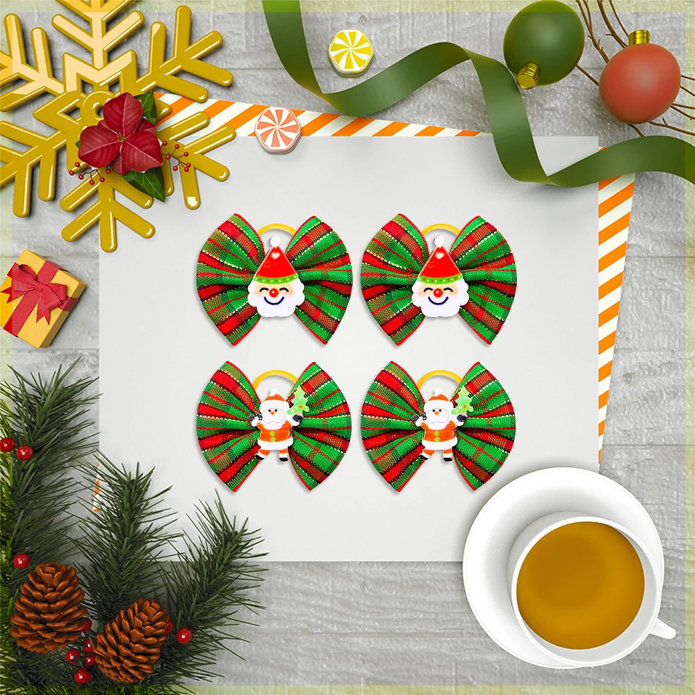 10/20PCS Dog Hair Bows Pet Bows Christmas Grooming Plaid Dogs Bowkont with Rubber Band for Small Dogs Party Hoilday Pet Supplies