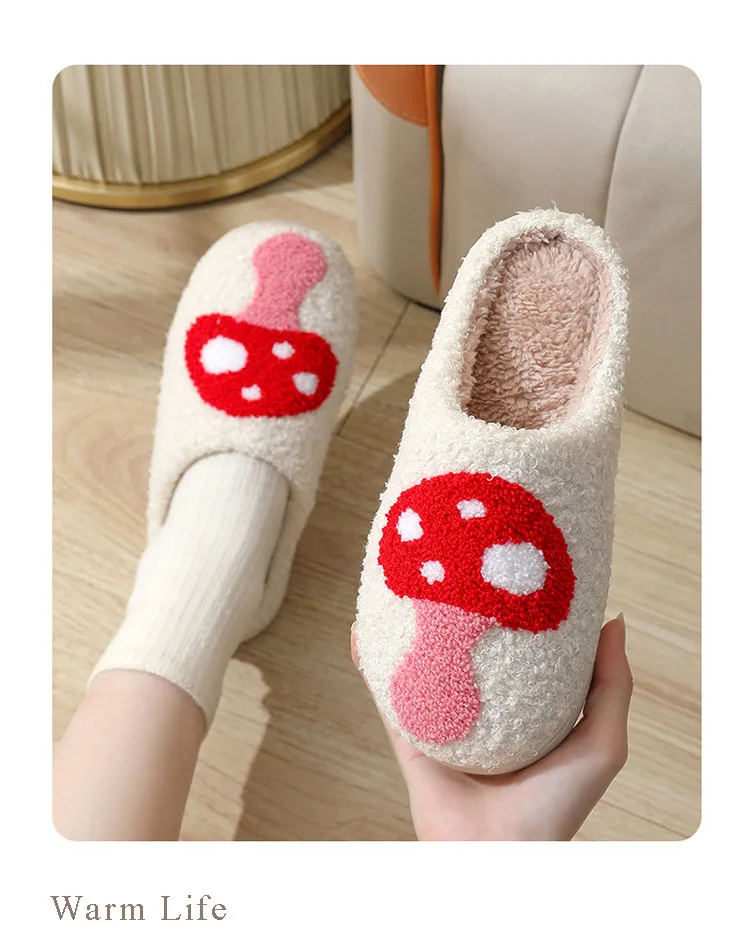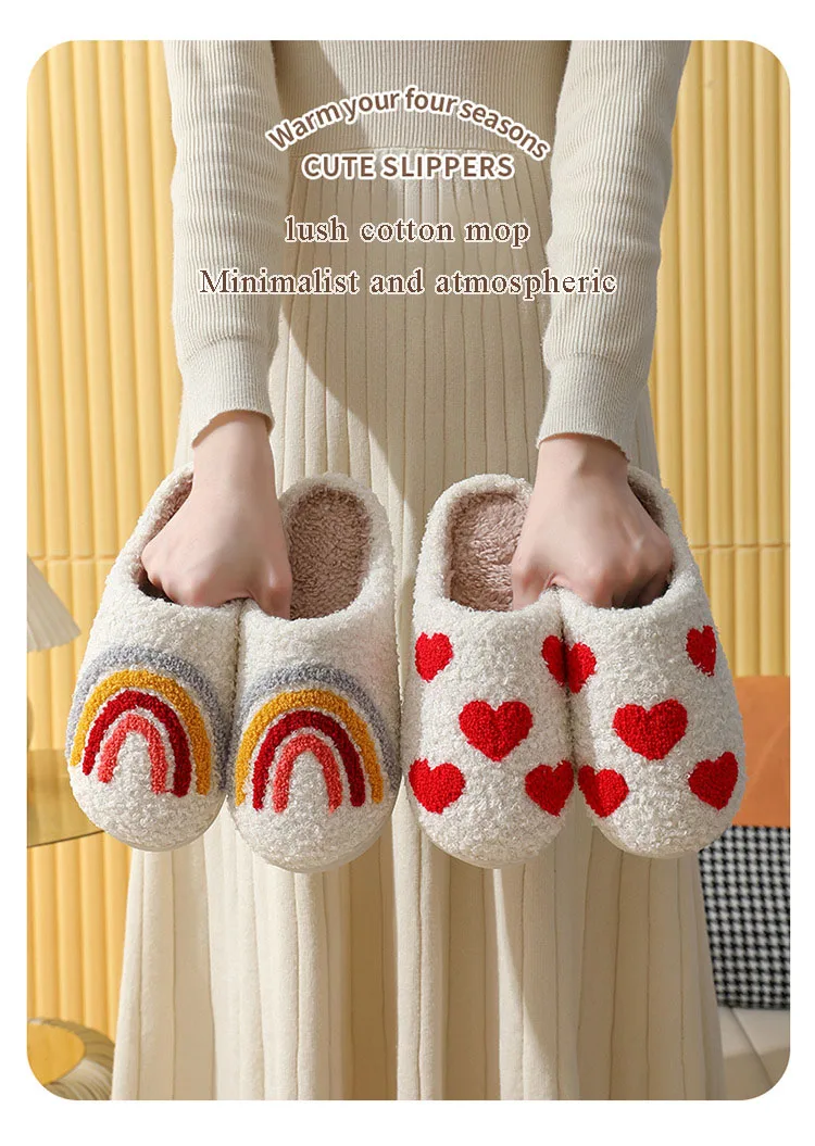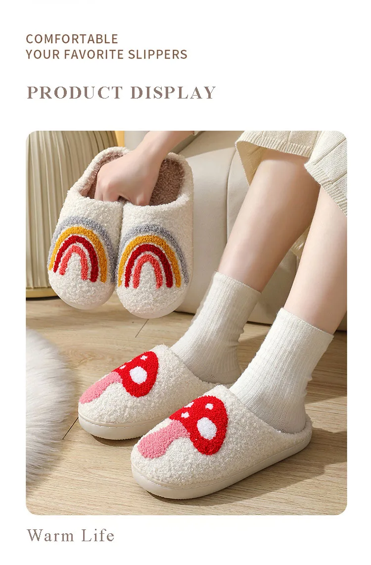 Hot Saling Winter Smile Face Heart Mushroom Warm Slippers Fashion Kids Girl Boy Size Fuzzy Slipper Plush Soft Indoor Child Shoes