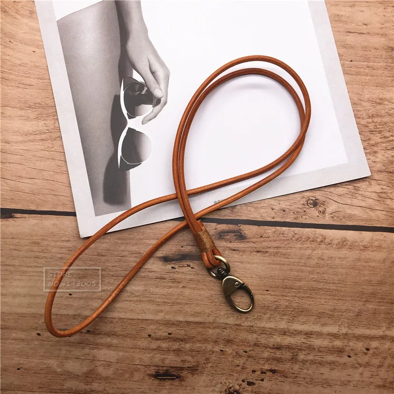 Leather Necklace Lanyard with Strong Clip and Keychain for Keys ID Badge Holder for USB or Cell Phone Brown Phone Strap